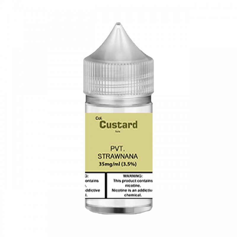 Col. Custard Salts - PVT. STRAWNANA A creamy infusion of strawberry and banana custards. Flavor ProfileBananaCustardStrawberry Quick LinksShop More Col. Custard Note: To be used for low powered devic..