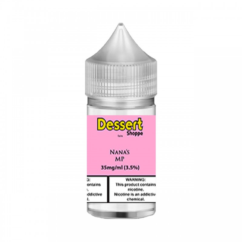 Dessert Shoppe Salts - Nana's MP A banana infused pie snack. Flavor ProfileBanana Quick LinksShop More Dessert Shoppe Note: To be used for low powered devices. NOT recommended for use with Sub-Ohm ta..