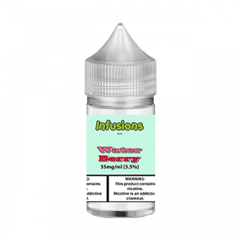 Infusions Salts - Water Berry A blend of strawberry, blueberry, and watermelon. Flavor ProfileBlueberryStrawberryWatermelon Quick LinksShop More Infusions Note: To be used for low powered devices. NO..