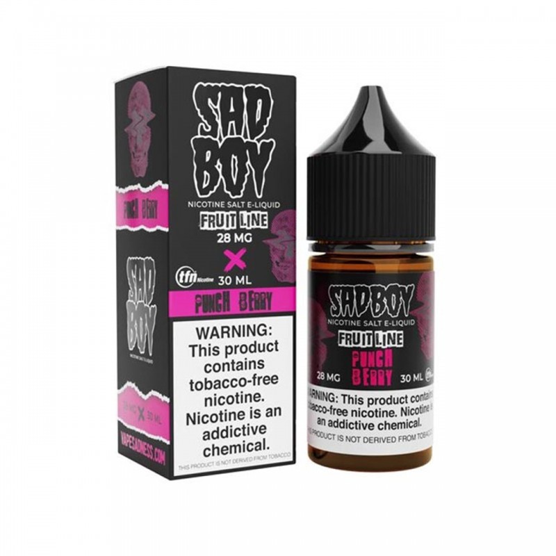 Sadboy Fruit TFN Salt - Punch Berry A well-rounded flavor with berries, tart lemons, delicious raspberries, and tops all that off with a lip puckering sour taste. Flavor ProfileBerriesLemonLemonadeRas..