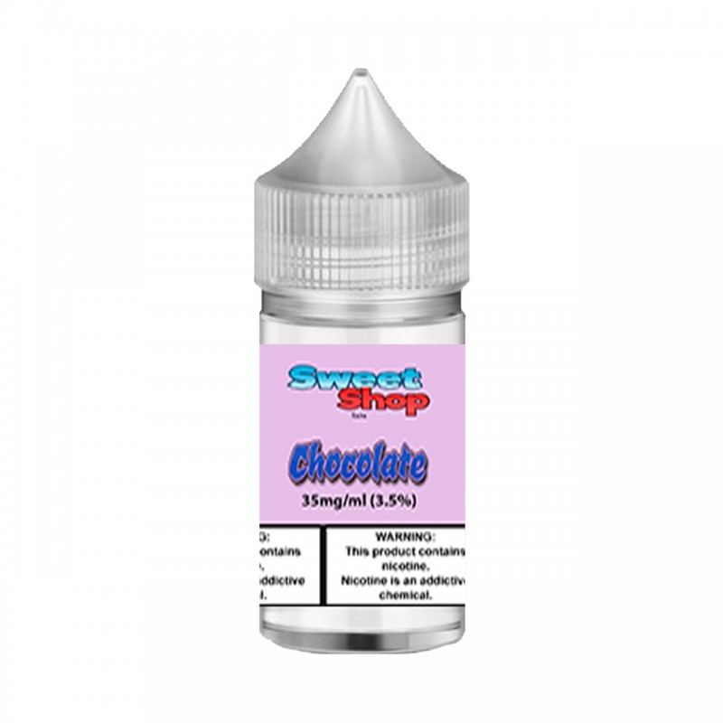Sweet Shop Salts - Chocolate A sweet chocolate bar with notes of caramel and peanuts. Flavor ProfileCaramelChocolatePeanut Quick LinksShop More Sweet Shop Note: To be used for low powered devices. NO..