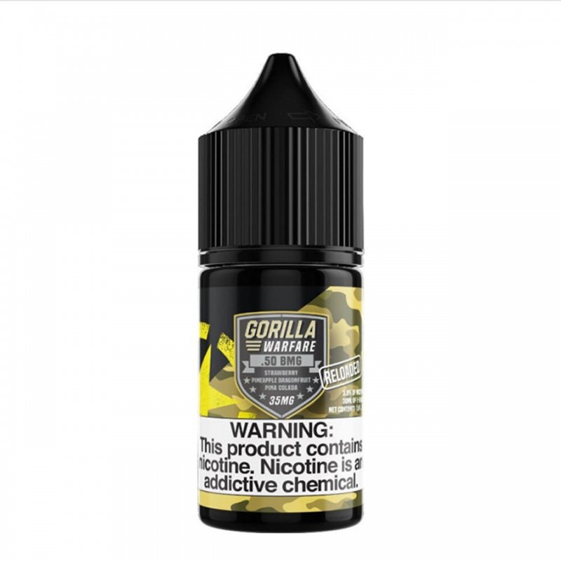 Gorilla Warfare Salt - .50 BMG Reloaded A heavy hitting strawberry, pineapple, dragon fruit, and pina colada. Flavor ProfileDragon FruitPina ColadaPineappleStrawberry Quick LinksShop More Gorilla Warf..