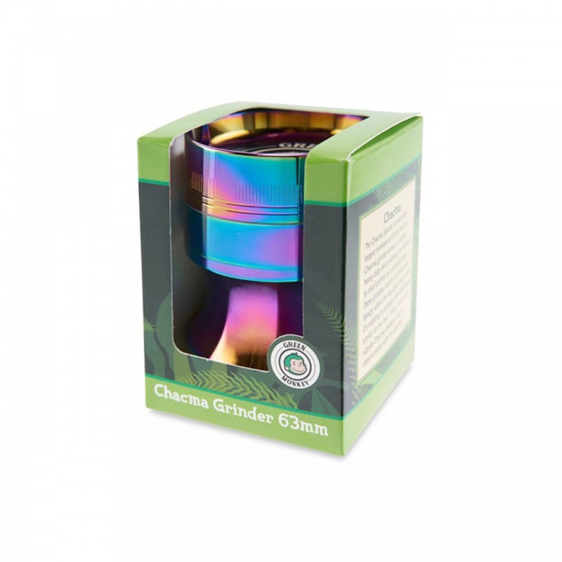 Green Monkey Chacma 63mm Grinder The Green Monkey Chacma 63mm Grinder features an innovative design where the top layer clicks while it's rotating to actively shred the flower, similar to the loud 'cl..