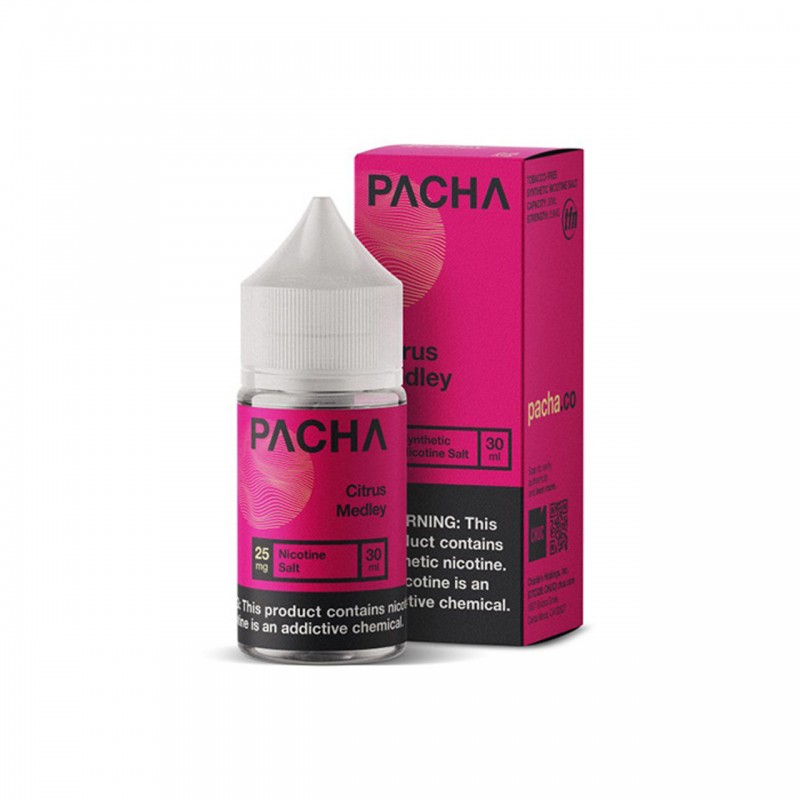 Pacha Salts - Citrus Medley A blend of citrus fruits that will tantalize the senses with sharp citrus notes followed by a delicious sweetness. Flavor ProfileCitrus Quick LinksShop More Pacha Note: Th..