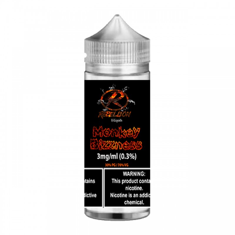 Rebellion - Monkey Bizzness A complex combo of bananas foster & banana nut bread with intense banana mid notes. Flavor ProfileBananaNuts Quick LinksShop More Rebellion..